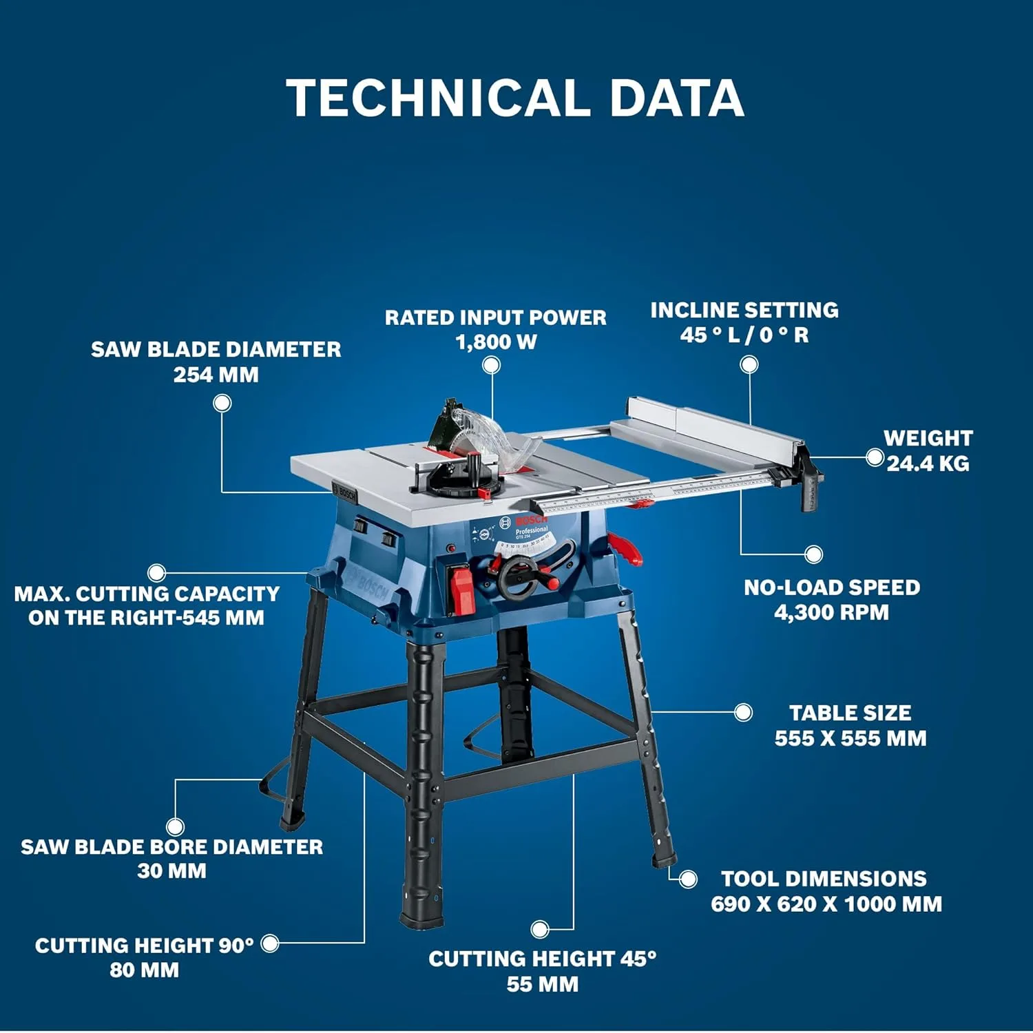• Rip capacity: 545mm