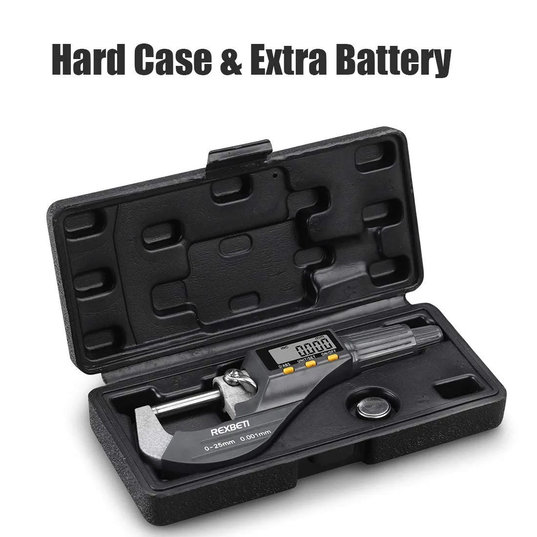 With a measuring range of 0–25mm and a resolution of 0.001mm, it ensures high accuracy for detailed work. The clear LCD display allows easy reading of measurements, while features like zero-setting and unit conversion between millimeters and inches improve convenience and efficiency.