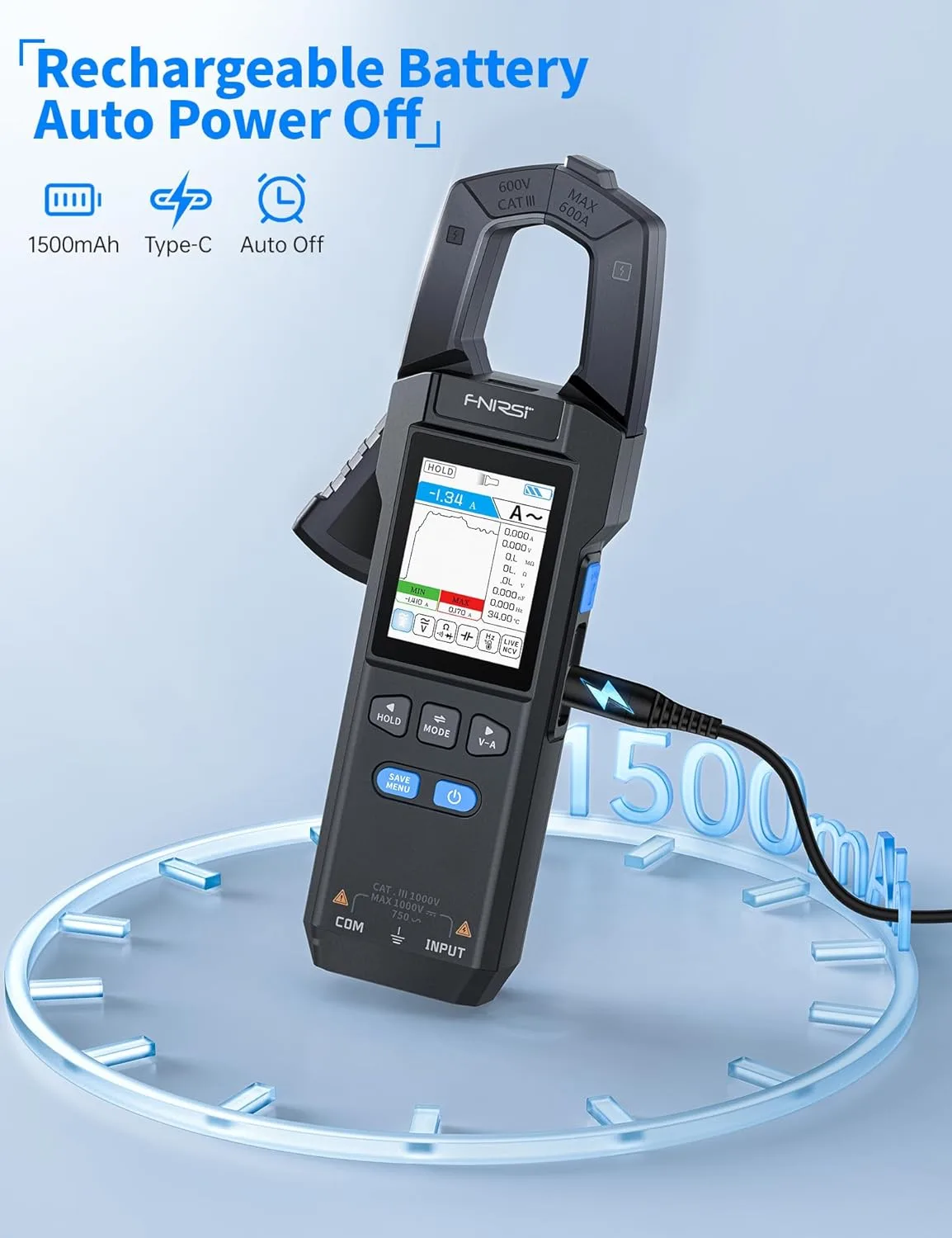 The FNIRSI DMC-100 is a versatile and professional-grade digital clamp meter and multimeter all in one, designed for electricians, technicians and lab use. With a 9999-count True RMS display, this tool can measure AC/DC voltage and current, resistance, continuity, diode check, capacitance, temperature and supports non-contact voltage (NCV) detection. The clamp jaw measures up to 600 A, and its rechargeable lithium battery supports extended operation. It features a full-color TFT display for clear readability under varying conditions and includes data recording modes for tracking measurement trends and historical values. Whether you’re performing HVAC diagnostics, automotive electrical work or industrial maintenance, the DMC-100 offers exceptional functionality and value.