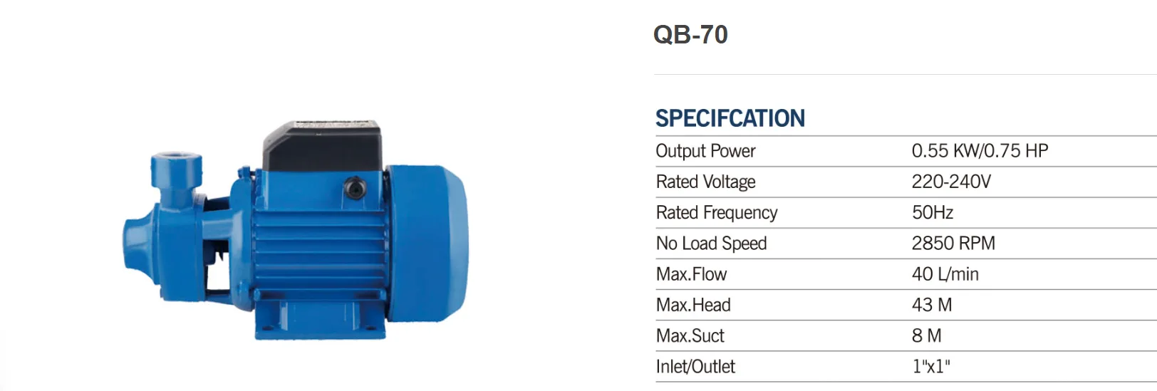Category: Pumps (Water Pumps, Submersible, Pressure Pumps) · SKU: QB-70
