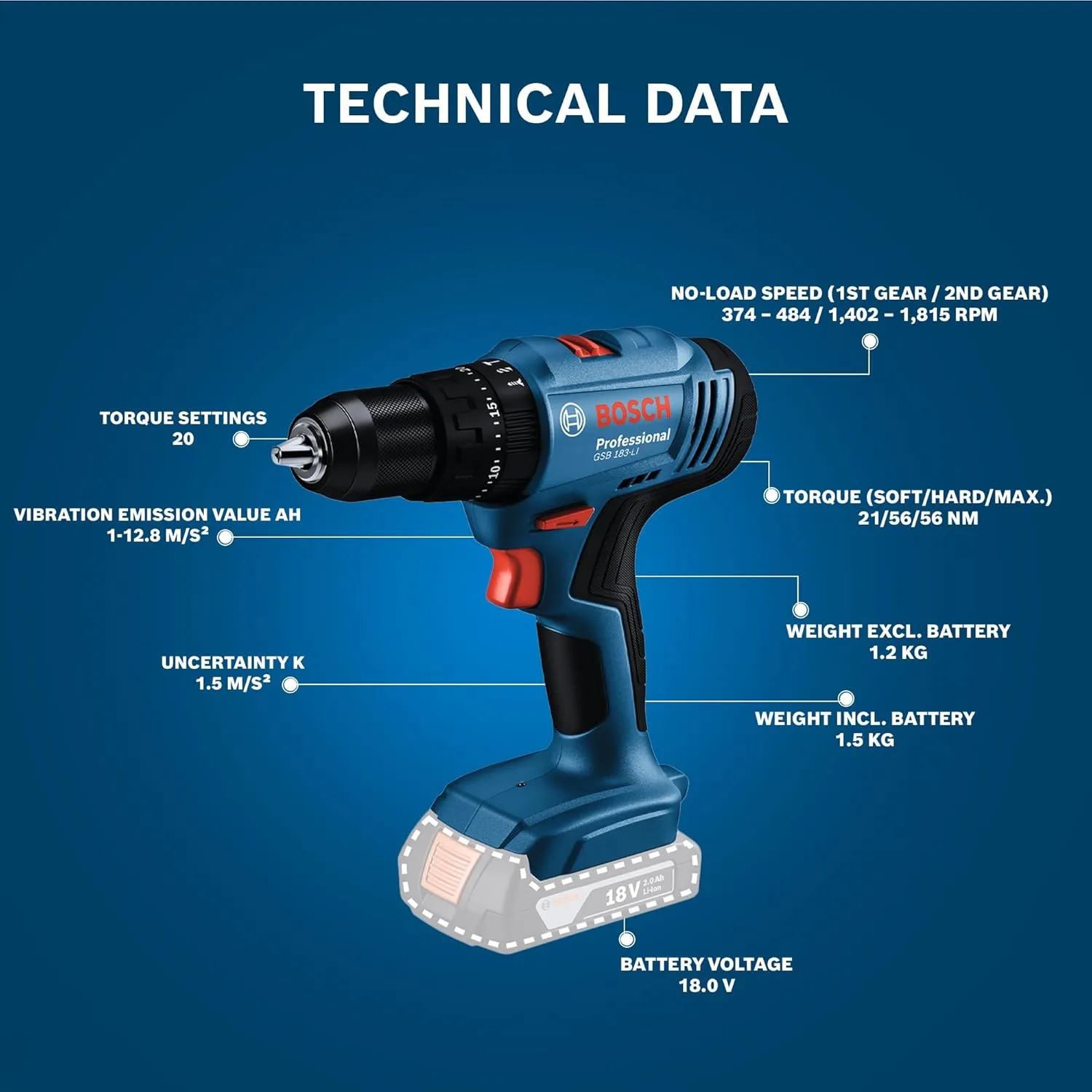 Category: Cordless Drills · SKU: BOSCH-GSB183LI