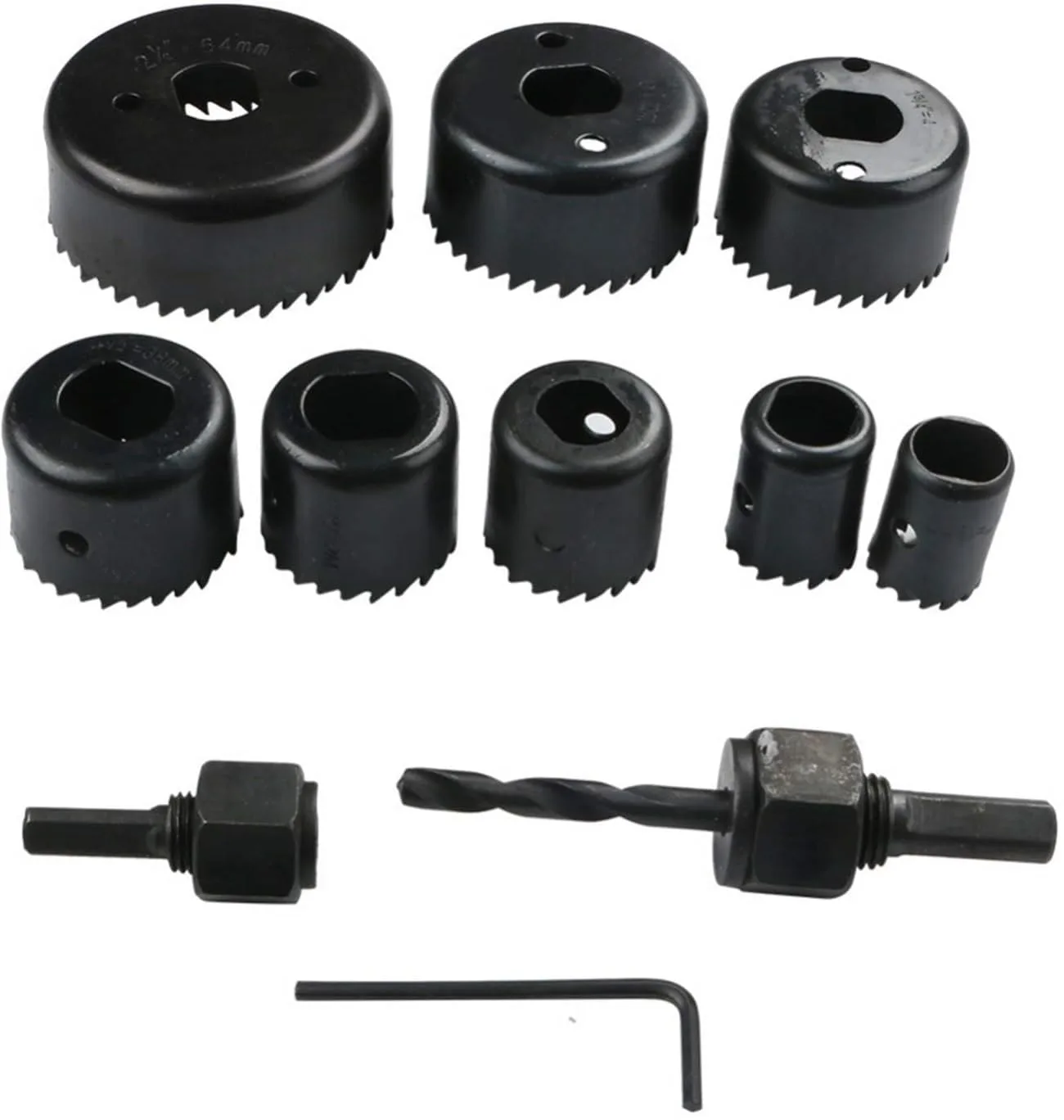Versatile 11-piece hole saw set, covering diameters from 19 mm to 64 mm — ideal for wood, plastic, metal and thin-sheet cutting.