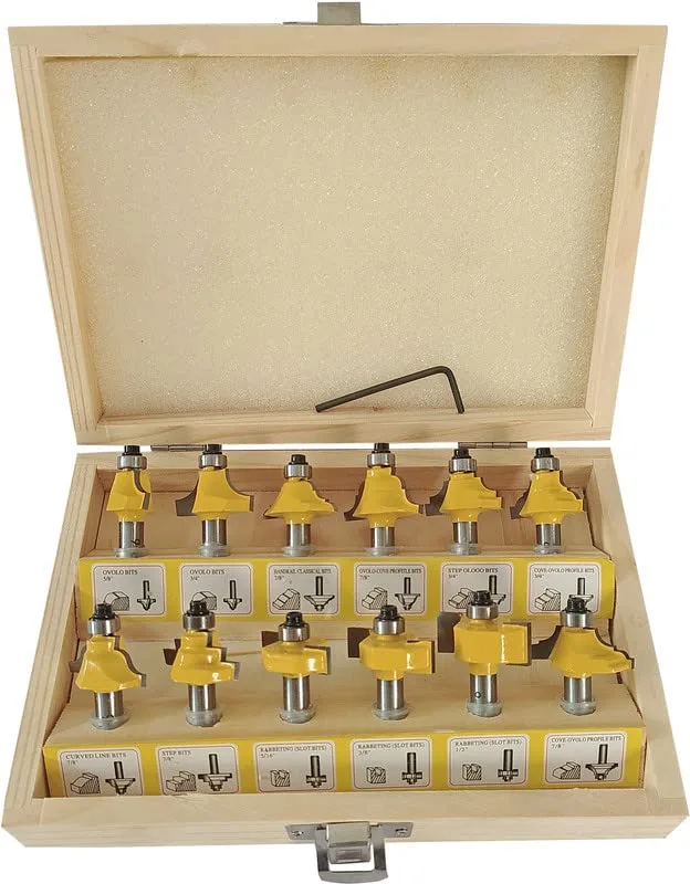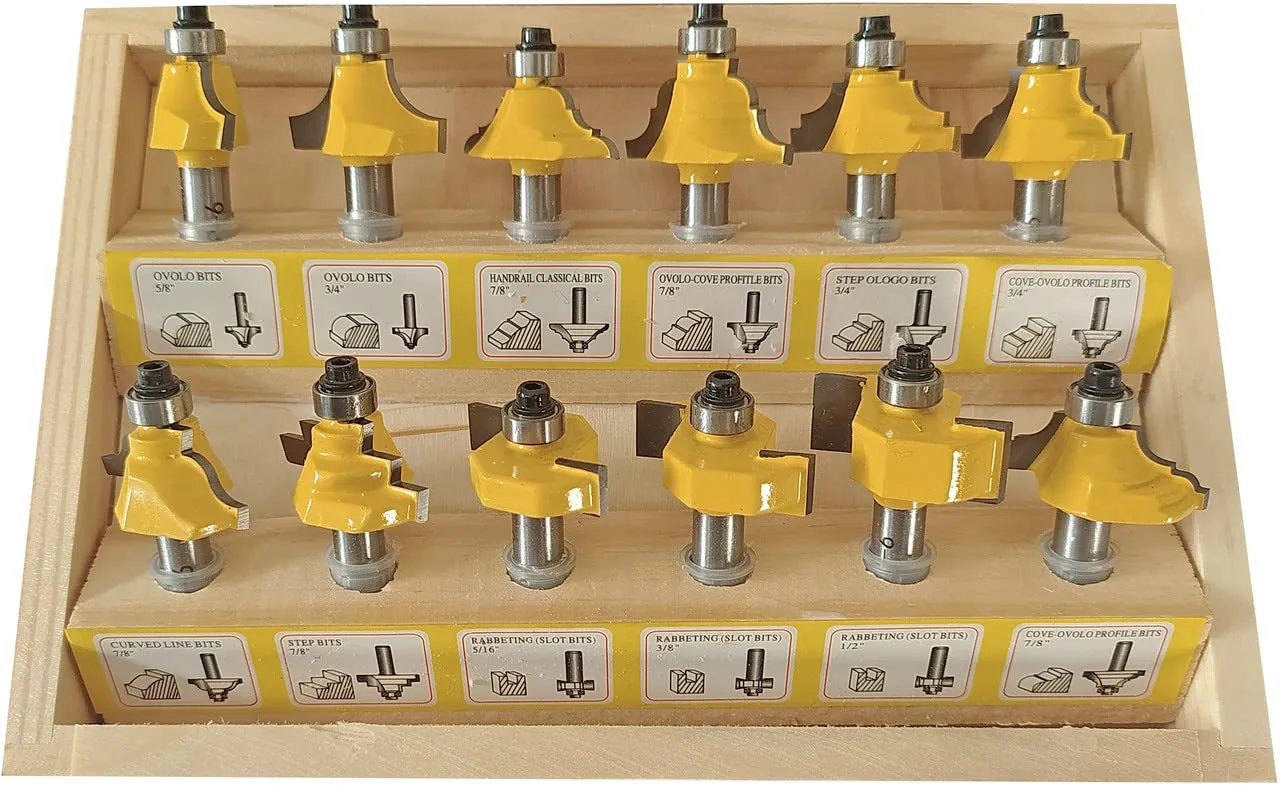Versatile 12-bit router bit set with 8 mm shank — perfect for precision trimming, edging, profiling, and decorative woodwork tasks.